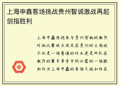 上海申鑫将迎来与贵州智诚的激烈对抗,比赛地点设定在贵州的主场,这不仅是一场普通的对决,更是两队在激烈的赛季争夺中所必需的一场胜利。作为上海申鑫的客场之战,如何在对手的主场取得胜利,是他们冲击更高排名的关键。本篇文章将详细分析上海申鑫如何在客场挑战贵州智诚,战术策略、球员表现、历史交锋以及心理准备等方面的重要性,从多个角度探讨他们剑指胜利的路径。首先,我们将对本场比赛进行总体的战术解读,并重点分析上海申鑫如何利用对方的弱点来获取胜利。接着,我们将从球员个体表现和团队协作两方面讨论申鑫如何提升自身整体实力。最后,通过回顾两队的历史交锋和心理博弈,展望这场比赛的可能结果,分析其背后更深层的战略意义。